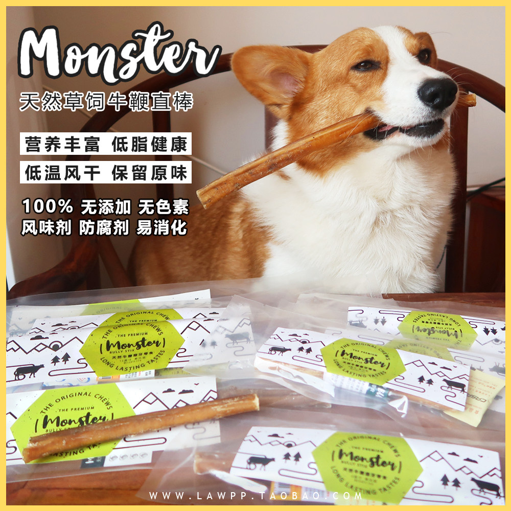 Monster bullwhip natural grass-fed cow JJ bite-resistant straight stick pet molar stick air-dried dog treats