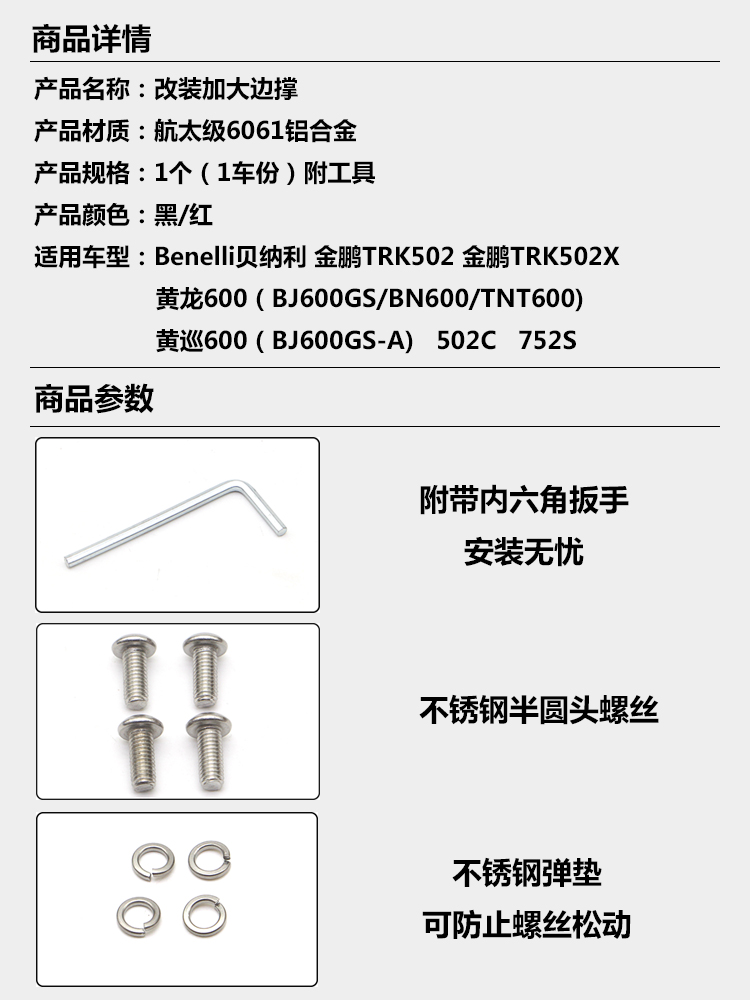 Yellow Tour 600 modified edge brace Increasing seat 502C 752S Yellow Dragon 600 chasing increasing side brace widening block anti-slip