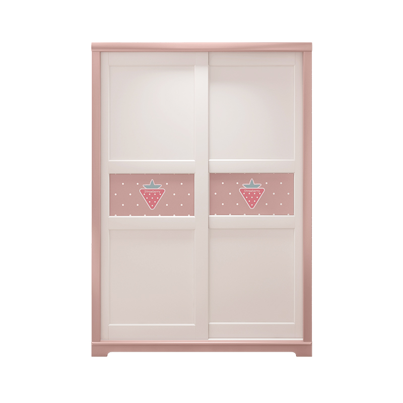 Strawberry Children's Wardrobe Sliding Door Solid Wood Wardrobe Modern Simple Girl Room Bedroom Cartoon Princess Pink Wardrobe