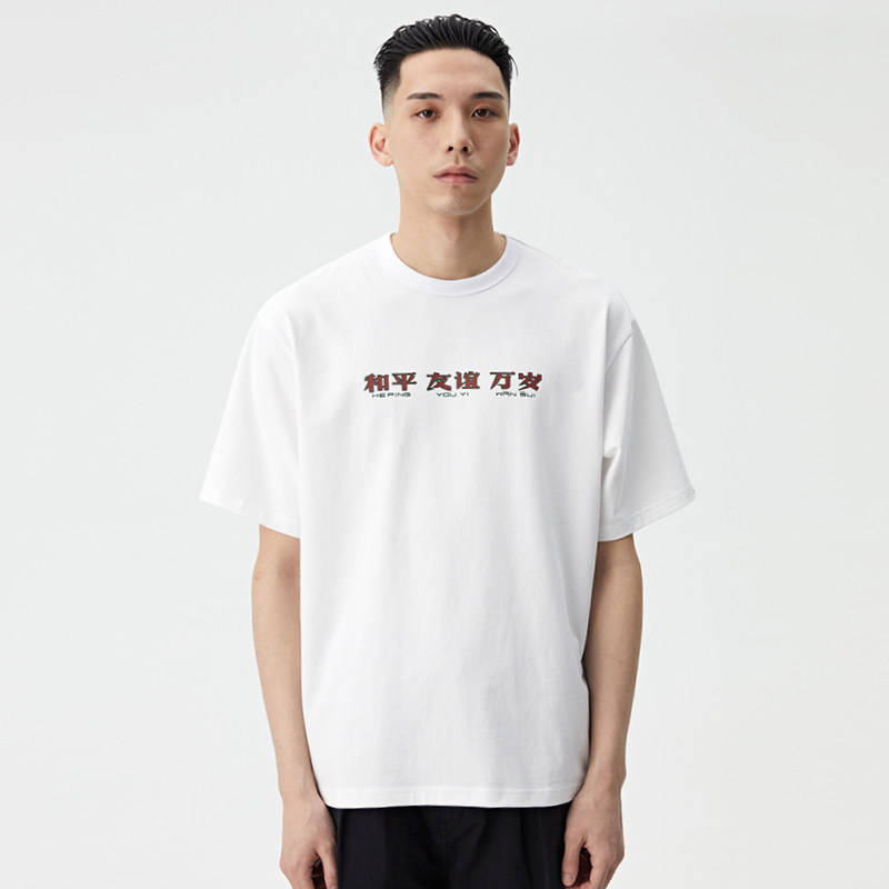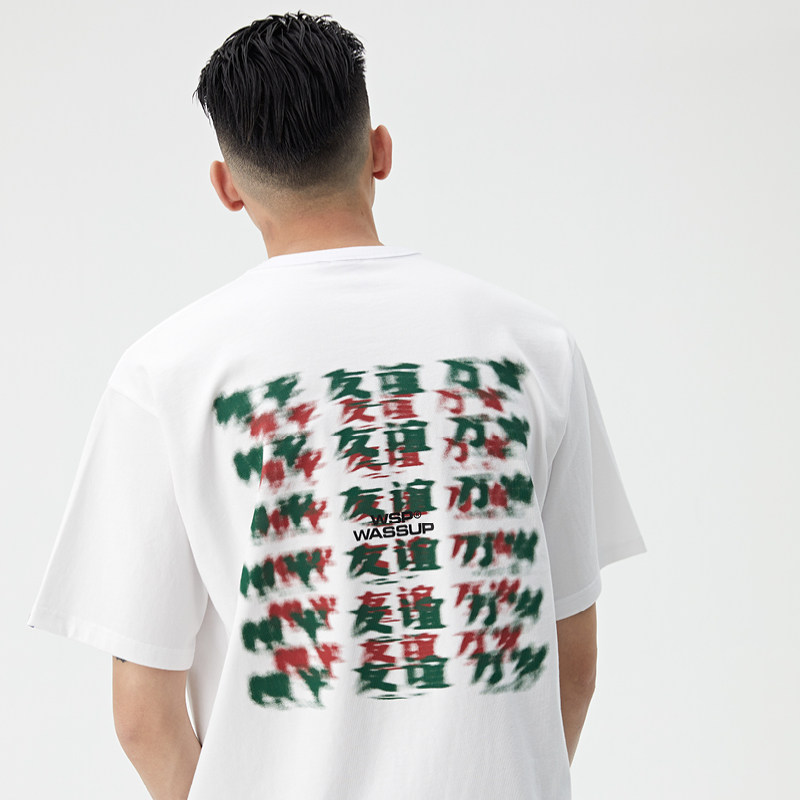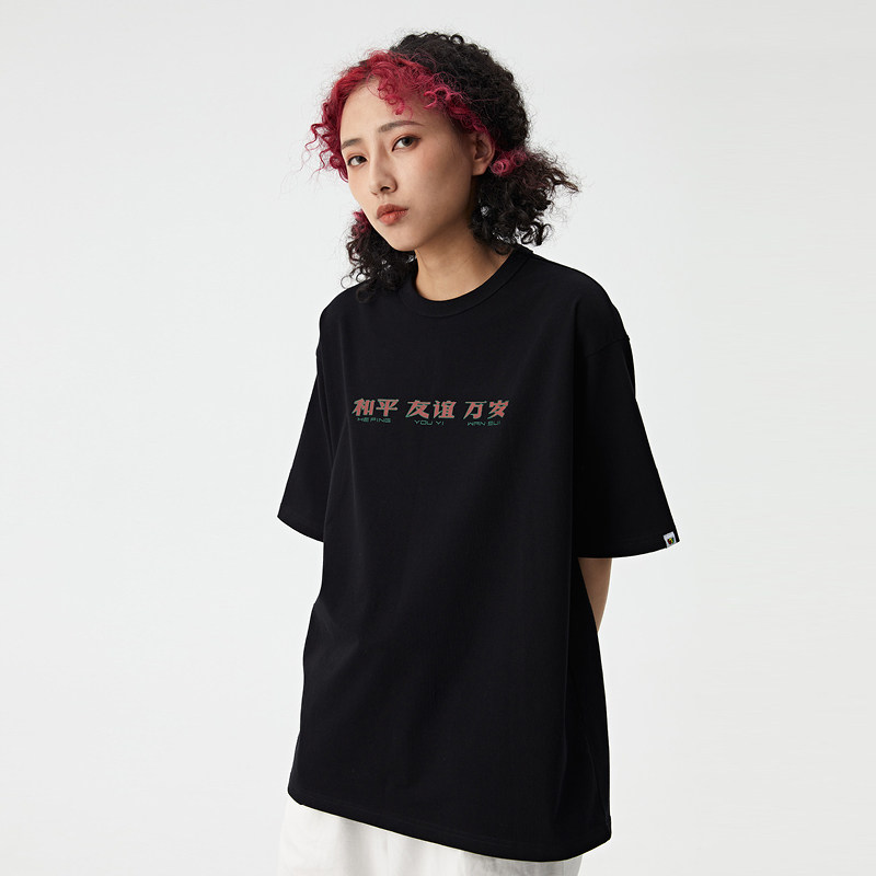 WASSUPT Shirt Tide Cards Men's Fashion Country Tide Peace Phantom Black Bump Short Sleeve Summer Loose Pure Cotton Female Couple