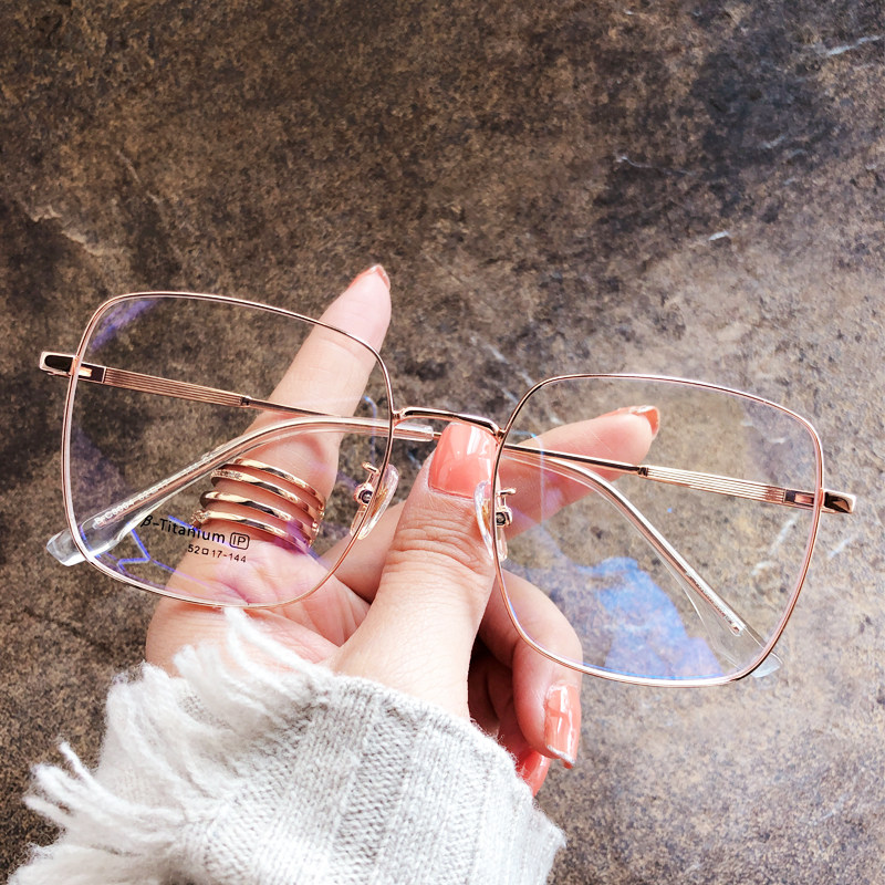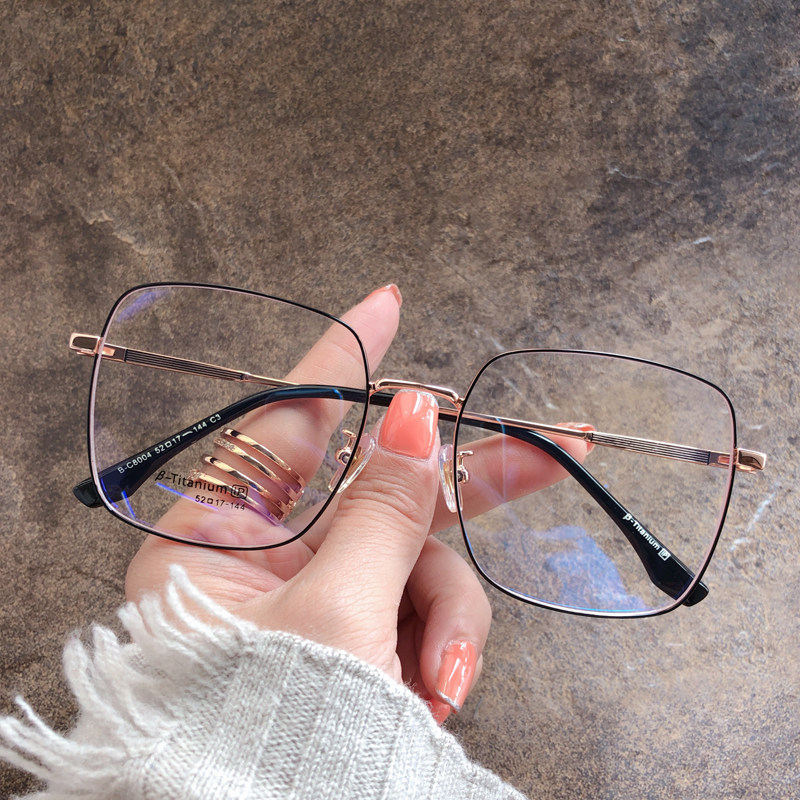Pure titanium ultra light large face Slim Square Near View Eyewear Glasses Female Net Red Korean version Tide Eyeframes can be matched with Blu-ray Men