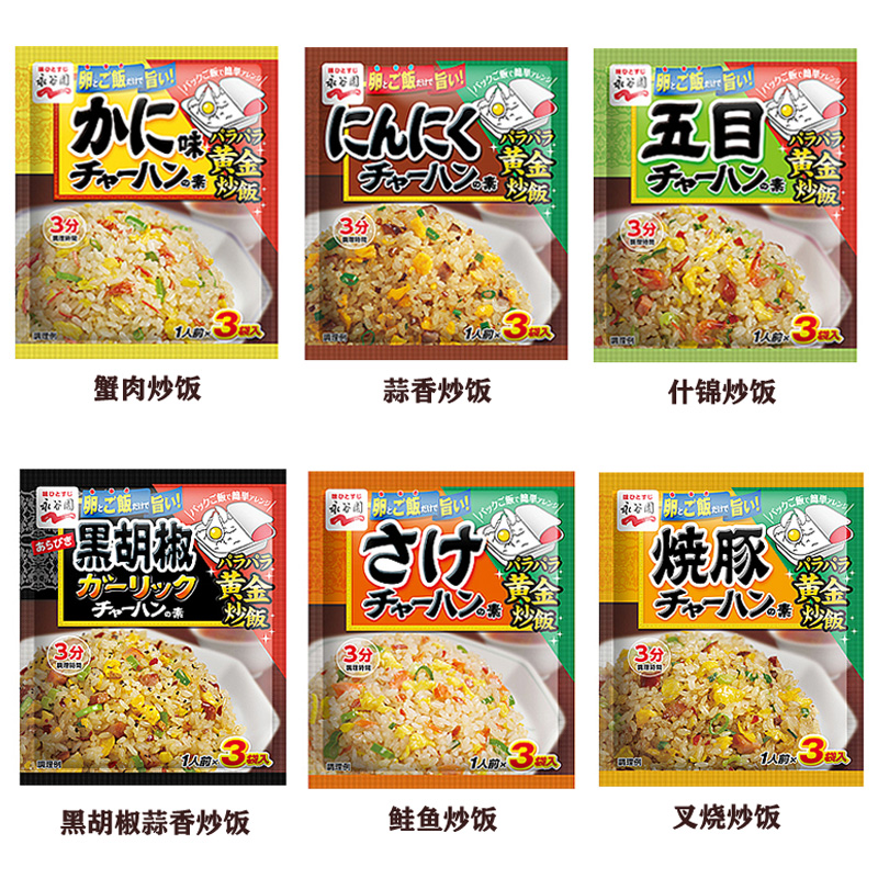 Convenient to eat Japanese Yongu Garden Day style fried rice seasoned with crab powder Flavor Roasted Pork Taste Shrimp Taste 5 Taste Bagged