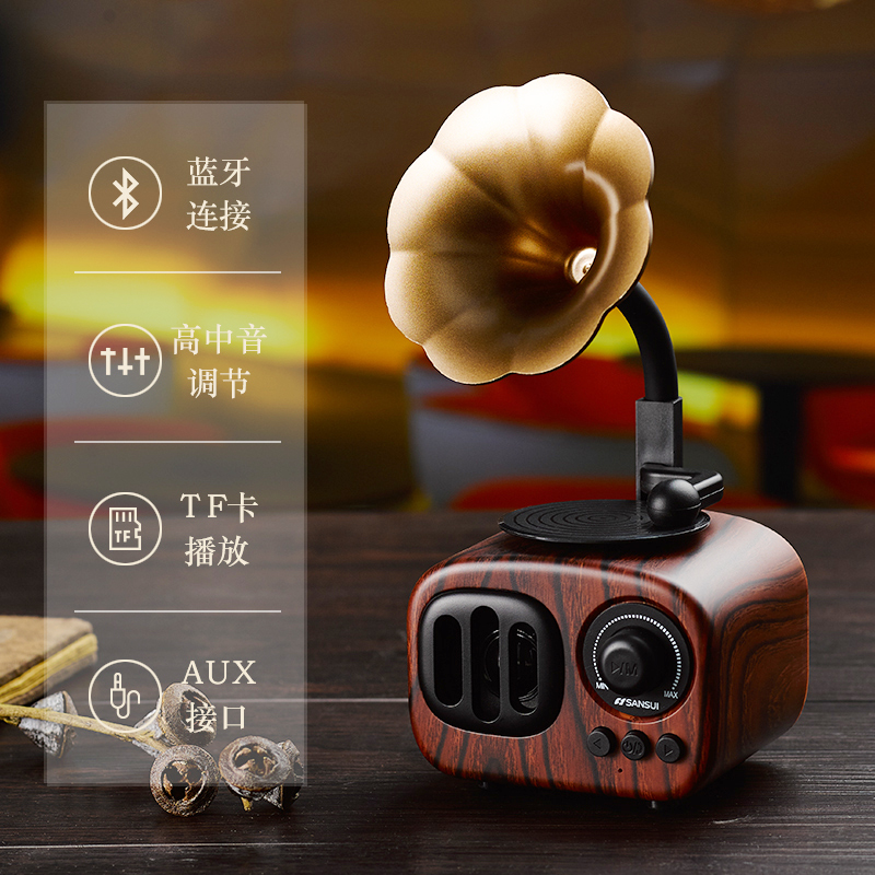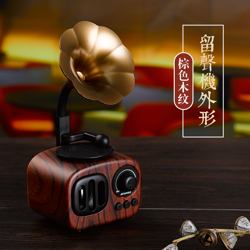 Bluetooth speaker Mobile phone wireless mini retro phonograph small audio plug-in card U disk radio Computer subwoofer