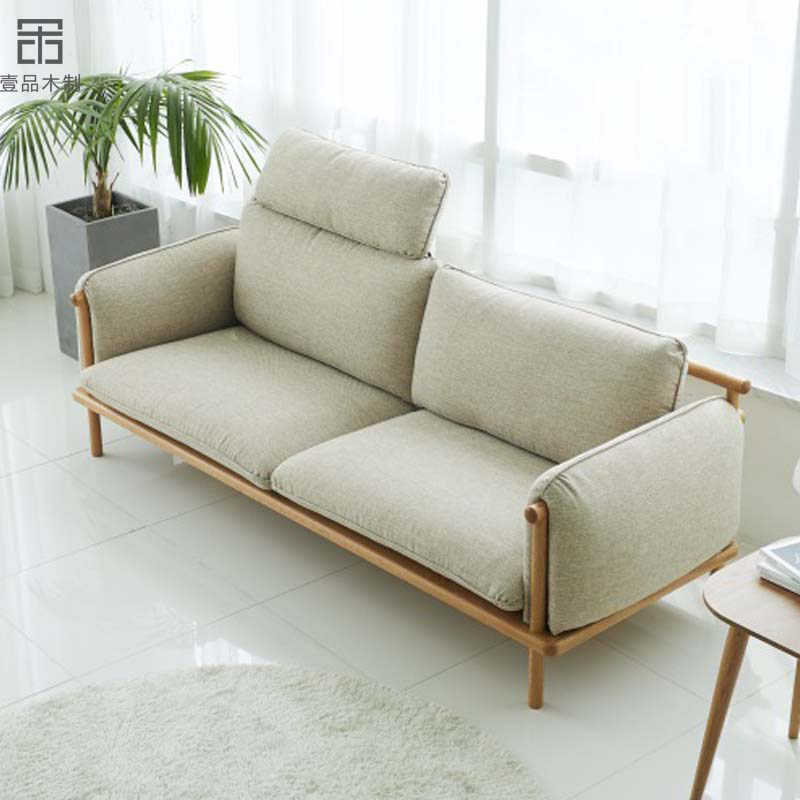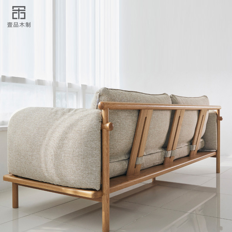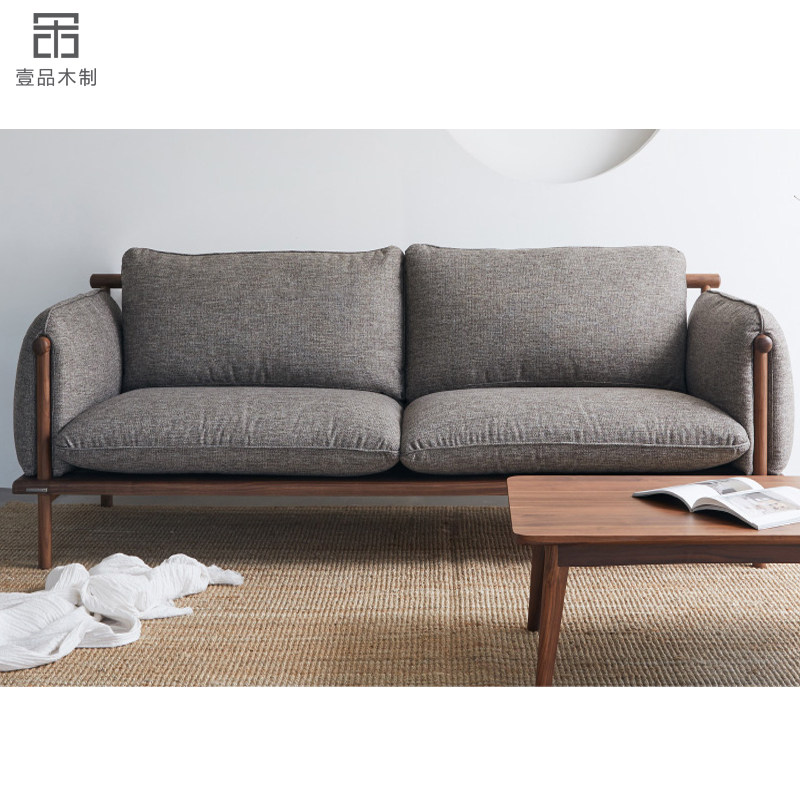 North American black walnut fabric sofa light luxury solid wood combination Japanese modern minimalist oak living room three people custom
