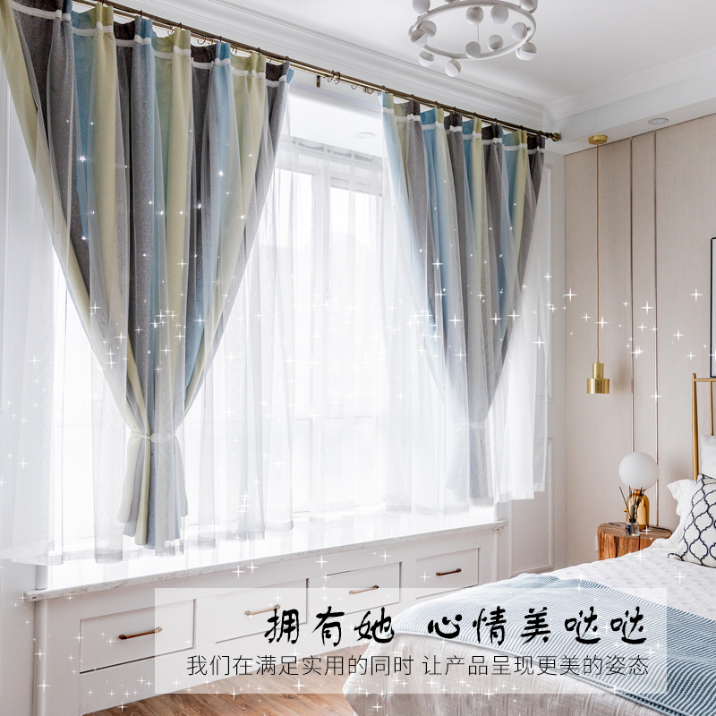 Jane about the modern day.,Triangular curtain buckle wave curtain common pleated pleated perforated curtain yarn 100-page wearing rod curtain