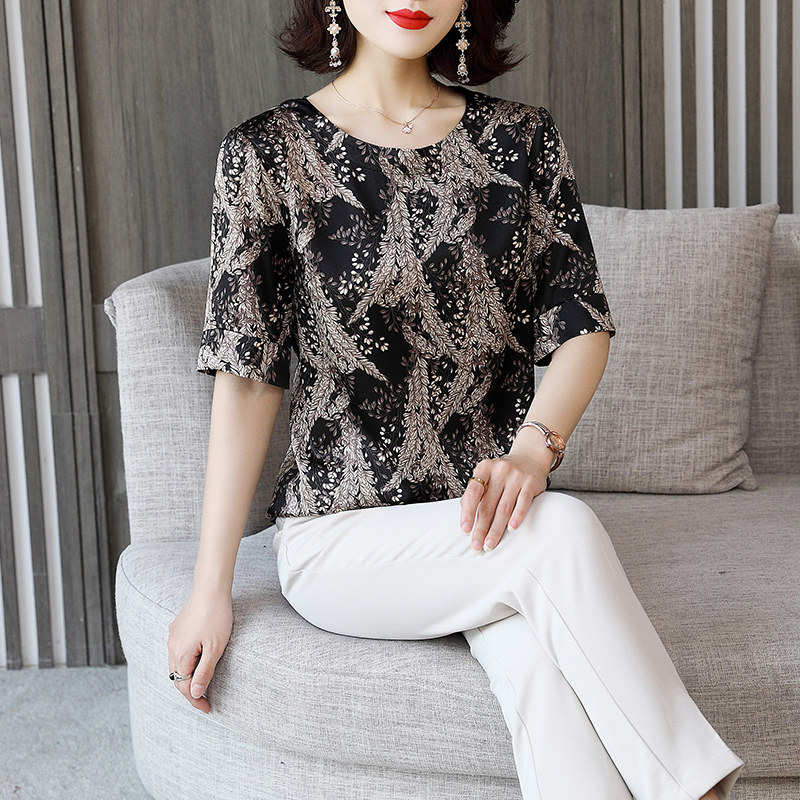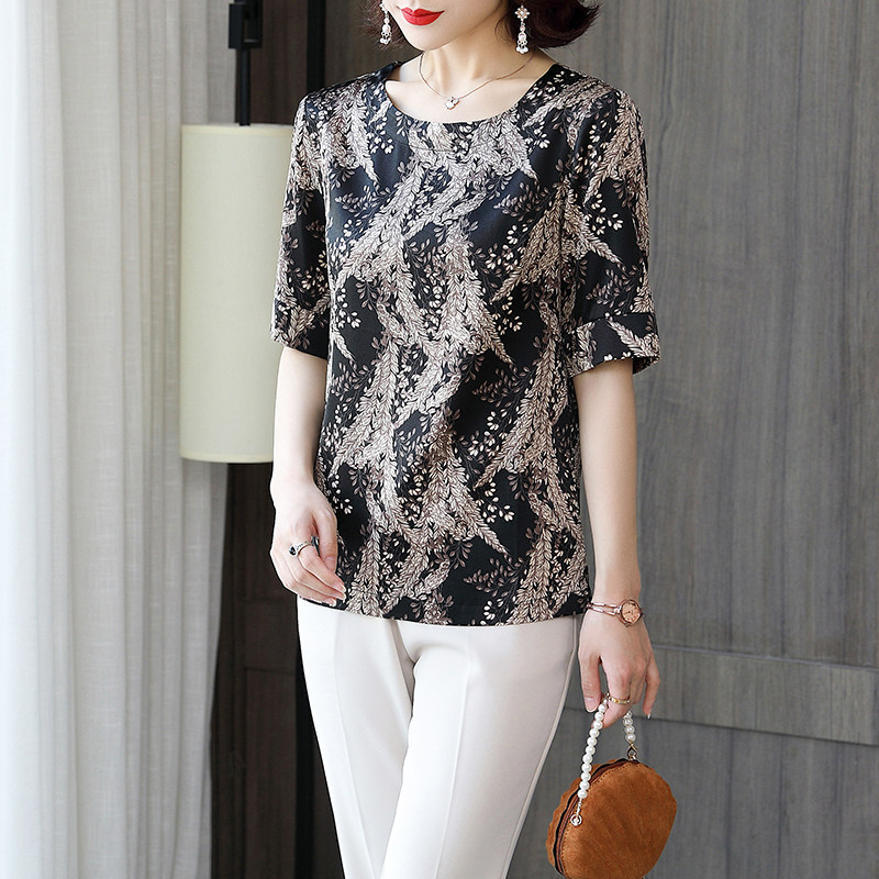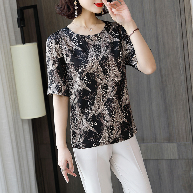 ZQQZ silk blouse women short sleeves round collar 2020 summer new big size satin heavy mulberry silk blouse 909