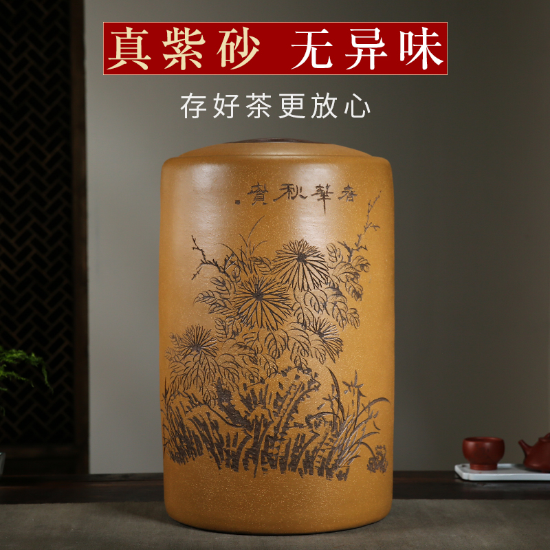 Pu-erh pot special large number Yixing Purple Sand Tea Leaf Pot 75 Cake Ceramic Seals Home Tea Cake Storage Tank Loose Tea Vat