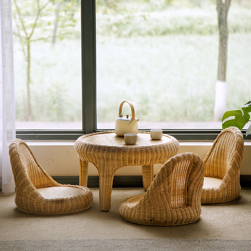 Modern minimalist balcony floating window small tea table Home Japanese style floating window table net red kang a few tatami rattan chic tea table-Taobao
