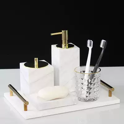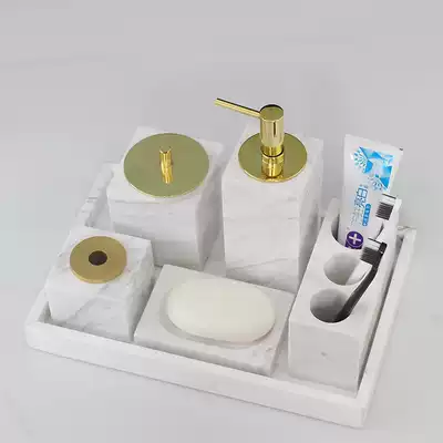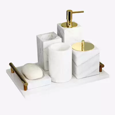 White jazz white marble emulsion bottle (square) Jazz white marble emulsion bottle (round) Jazz white marble Cup jazz white marble electric toothbrush holder jazz white marble cotton stick box (square) Jazz White