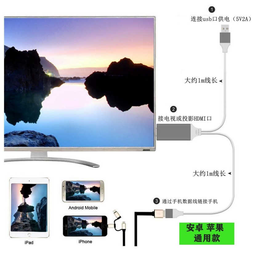 Mobile phone screen projection line HD wireless TV cable converter Huawei Xiaomi Android Apple Universal