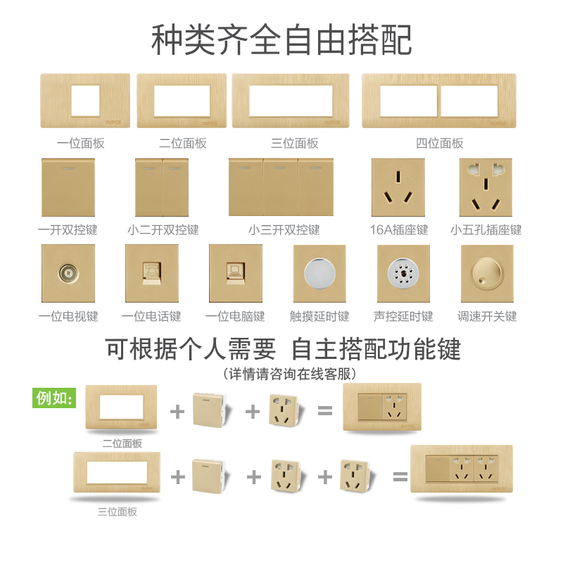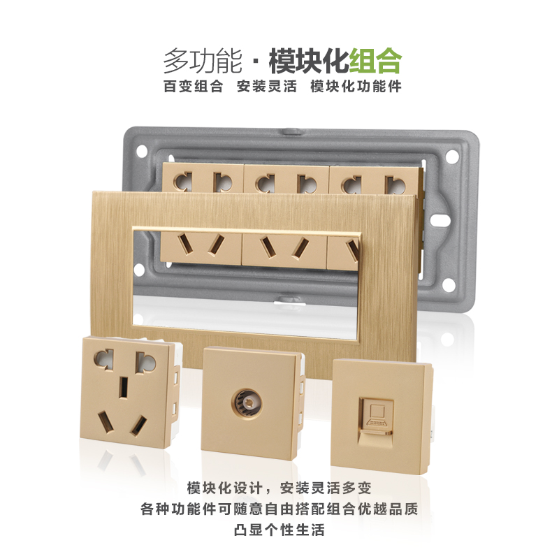 118-type switch socket set two-position ten-hole socket concealed champagne gold wall household panel five-hole module