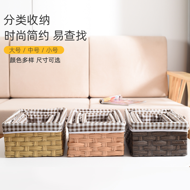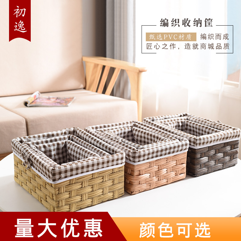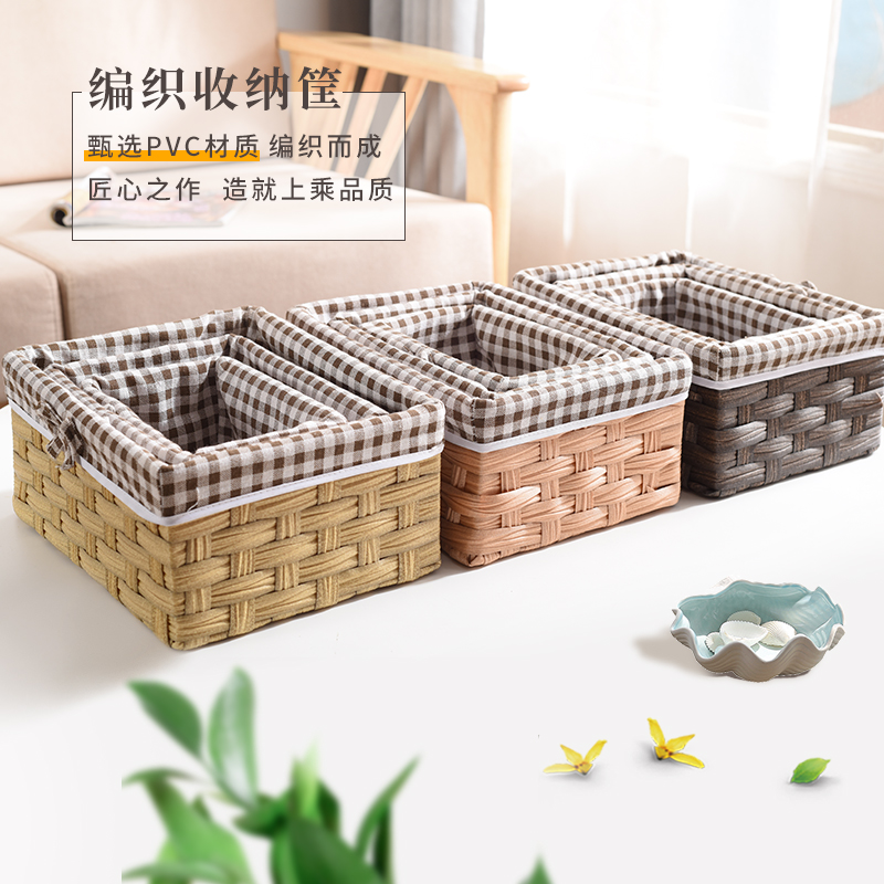 PVC woven storage basket storage basket rattan desktop key toy finishing basket storage basket sundries basket household