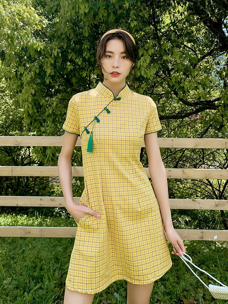 Qipao 2022 Short-style autumn and winter high-end temperament Chinese wind Little Subyoung Girl Chinese Wind Ocean Clothing