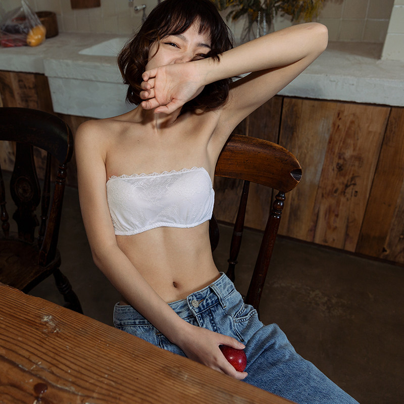 Boot Lower Things No Shoulder Strap Girl Lace Underwear Anti Slip Summer Thin with steel ring Little breasted breasted side Buttoned Bra