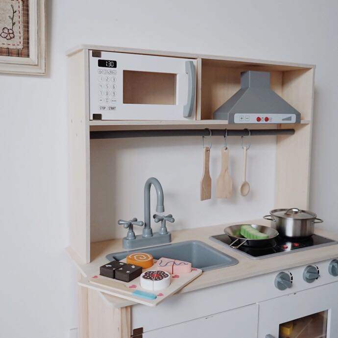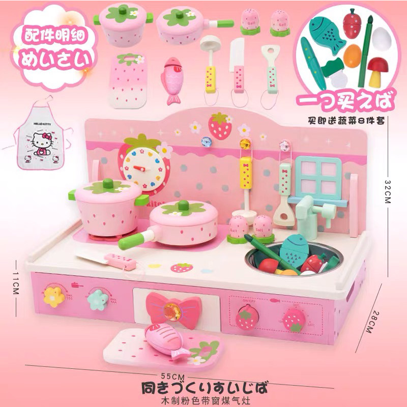 Youlebi Kitchen Model C Youlebi Kitchen Model C Chechele Korea todokids Chechele new ins kitchen Strawberry Kitchen free Chechele apron Korean luxury black and white (sound and light) Korea