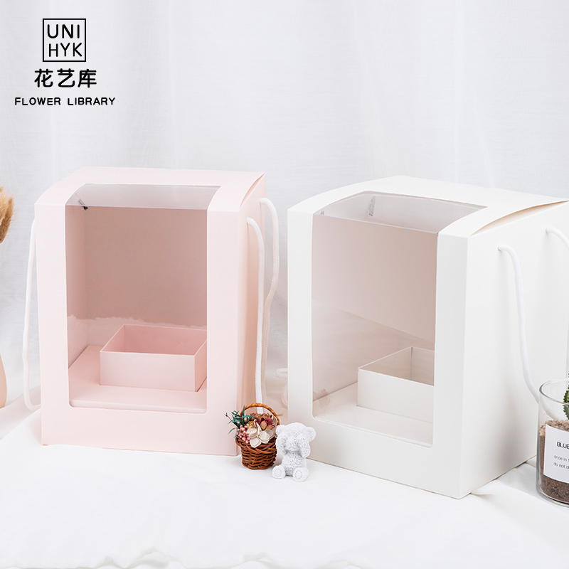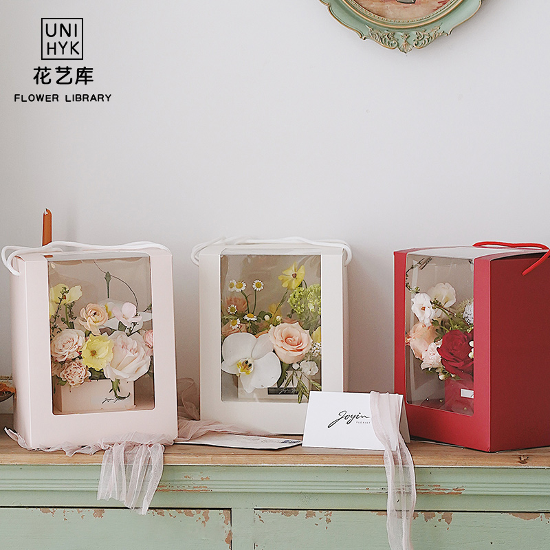 Valentine's Day Carry-on Box Flowers Box Flowers Box Bouquet Boxes of Fins Net Red Transparent Shop Windows Perpetual flower boxes