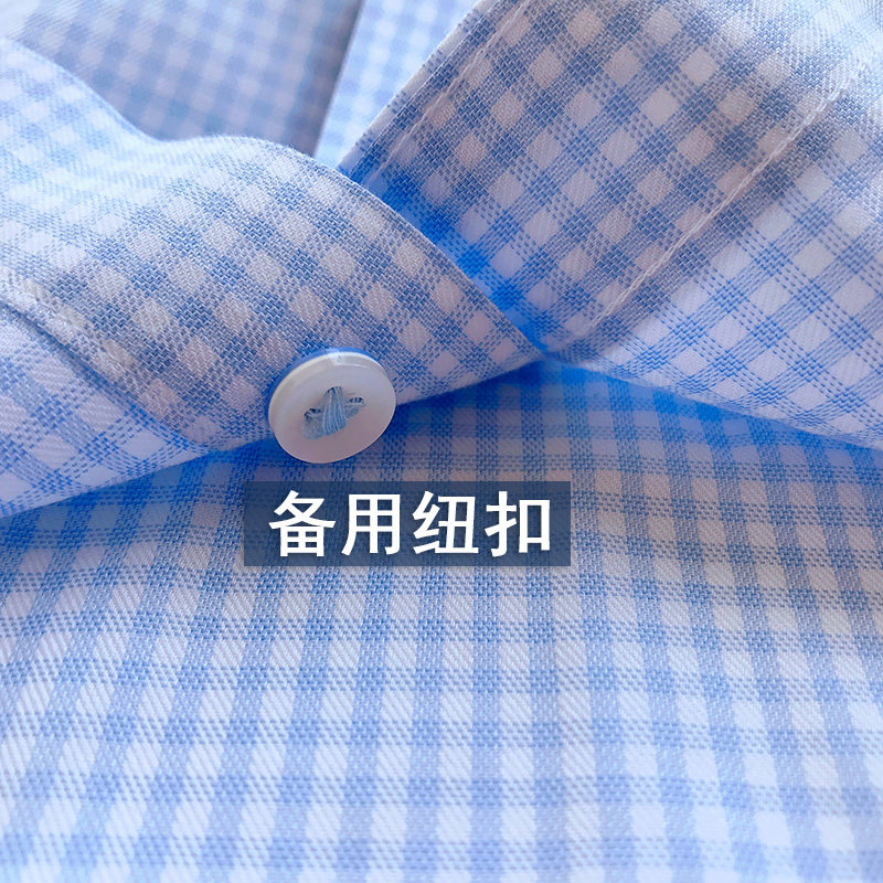 Youngor short-sleeved shirt men's cotton inch shirt Business casual loose square collar free ironing summer blue plaid shirt men
