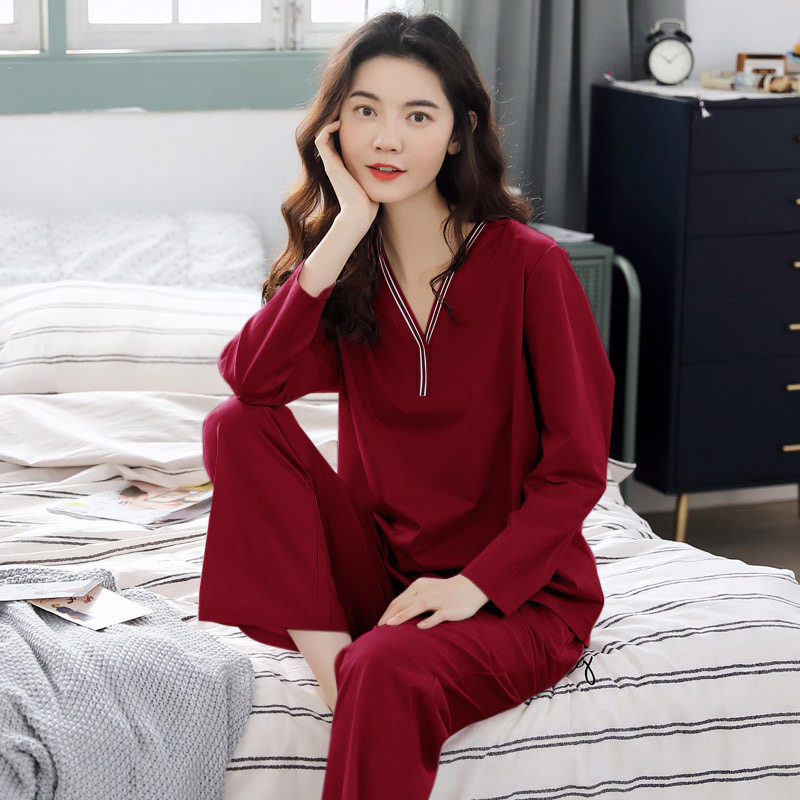 Pure Cotton Pyjamas Woman Long Sleeve Autumn Full Cotton Spring Autumn Thin summer Home Residence Dress V Collar Suit Door Lady Casual-Taobao