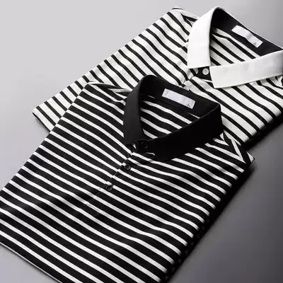 Rich bird men's striped short-sleeved POLO shirt men's summer thin lapel light business slim casual inner t-shirt