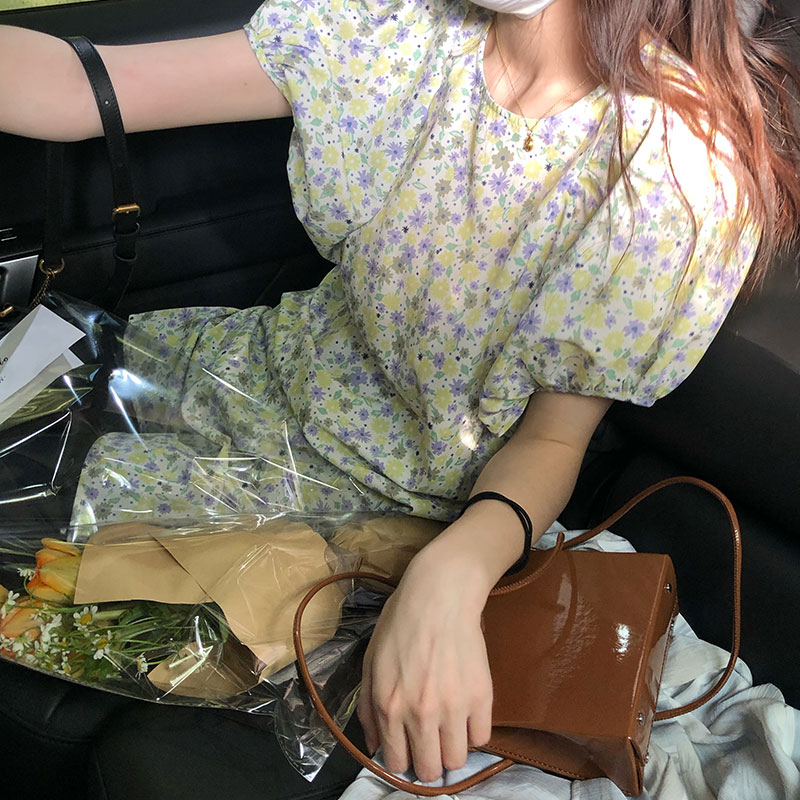 OPENING Homemade French Retro Floral Puff Sleeve Dress Female Summer Small Skirt 2021 New