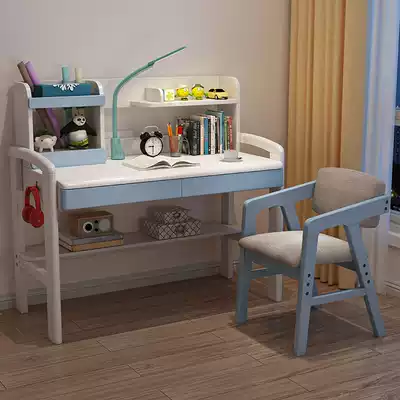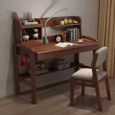 Solid wood desk with bookshelf pink liftable learning table student desk home work table simple girl
