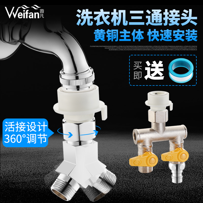 Washing machine water inlet three-way water distributor Live quick connection Double one-way two-way two-way three-way water valve faucet joint