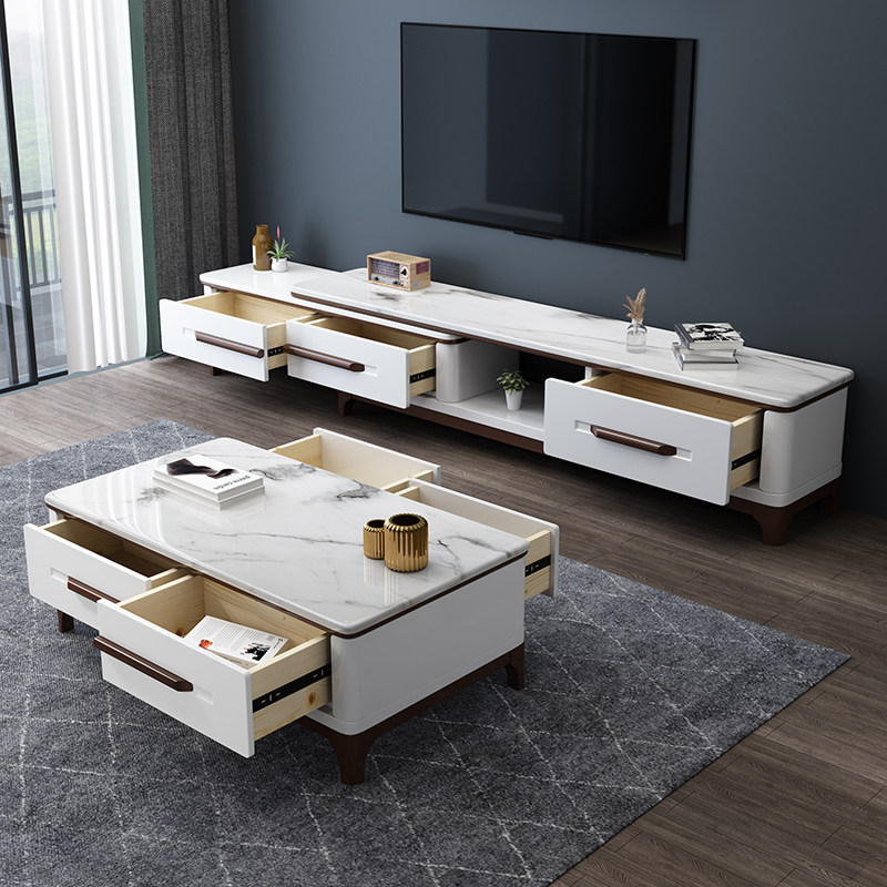 Marble TV cabinet Composition modern minimalist solid wood glass stone TV enclosure living-room cupboard Cupboard Ground Cabinet