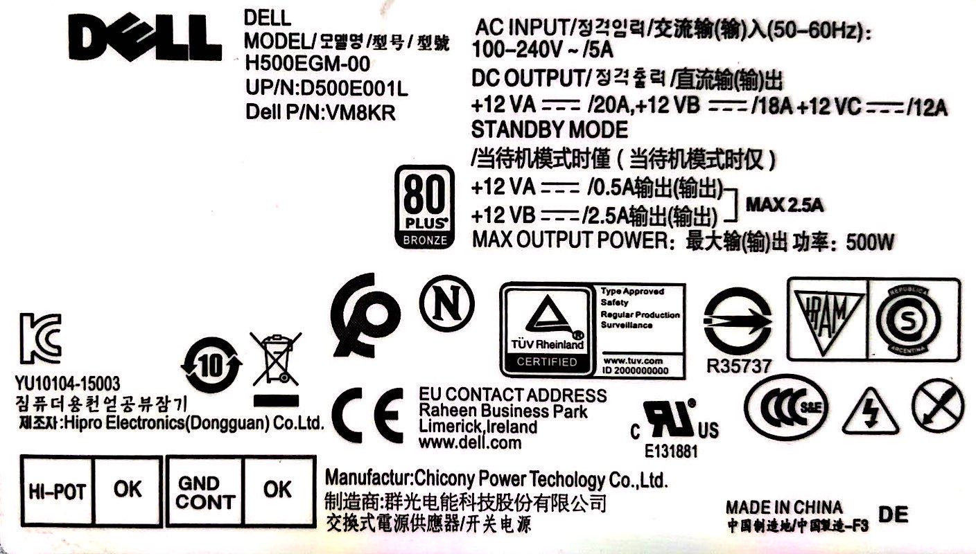 Original Dell power supply 5060 3060 7060MT sff 500W power supply graphics card 6 8 H500EGM-00