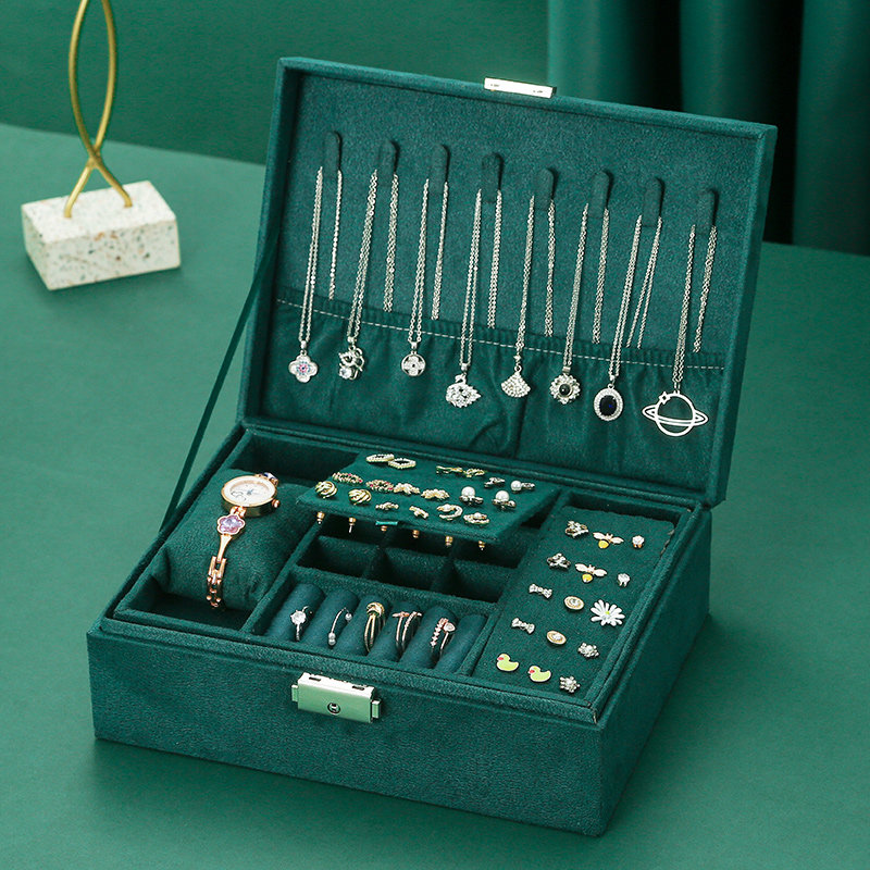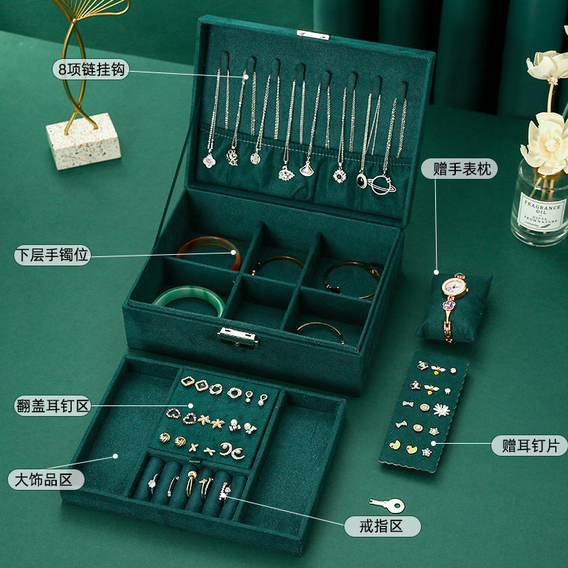 Double layer lock jewelry box storage box studring rings box jewelry earrings hand ornament storage box ins wind large capacity