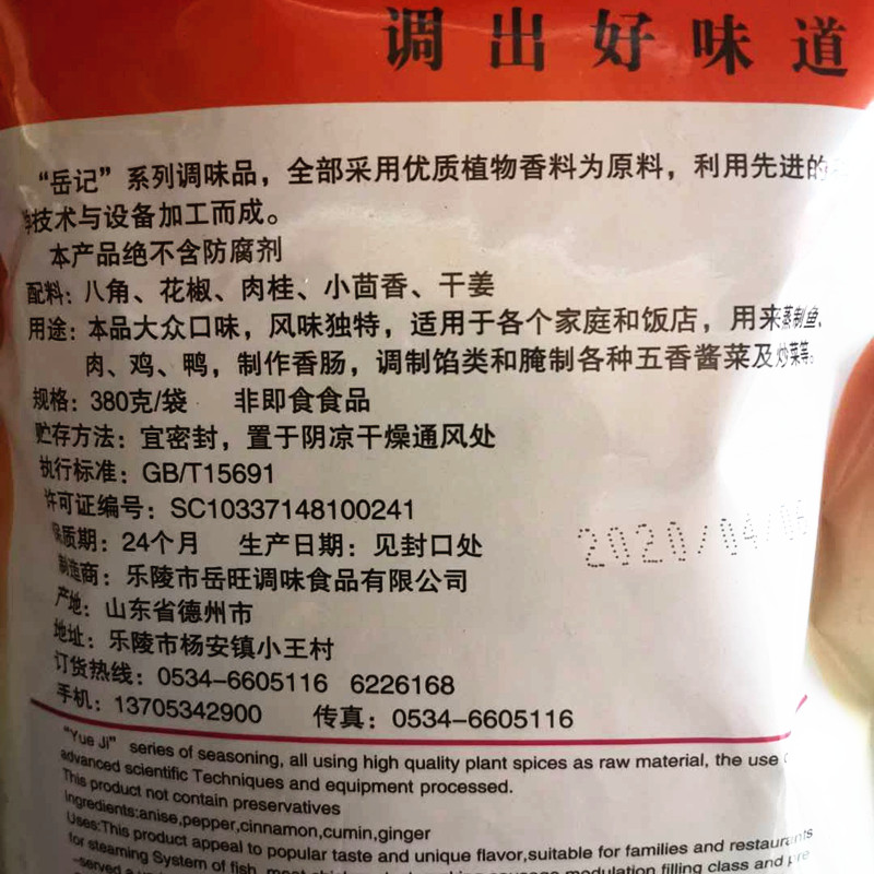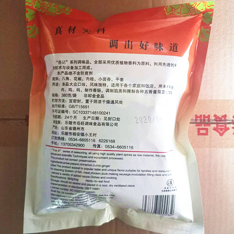 Date Star Five Spice Powder 380g Yuekee Series Seasoning Compound Seasonings Five-Spice Powder 5 Bags