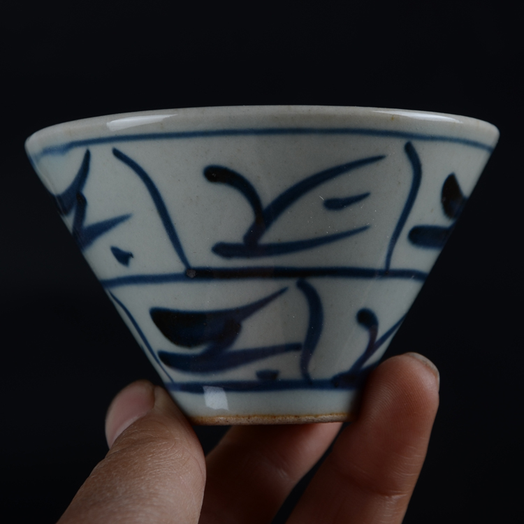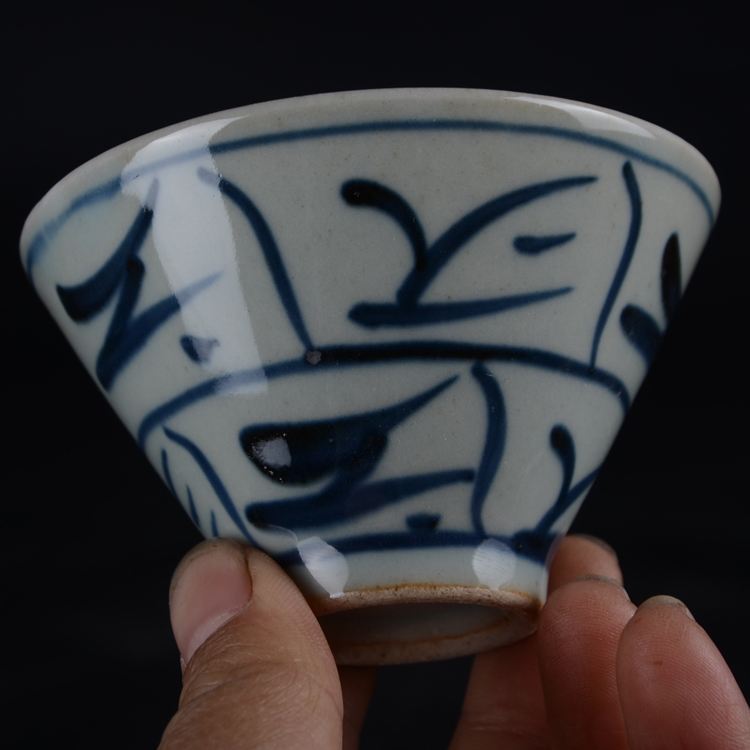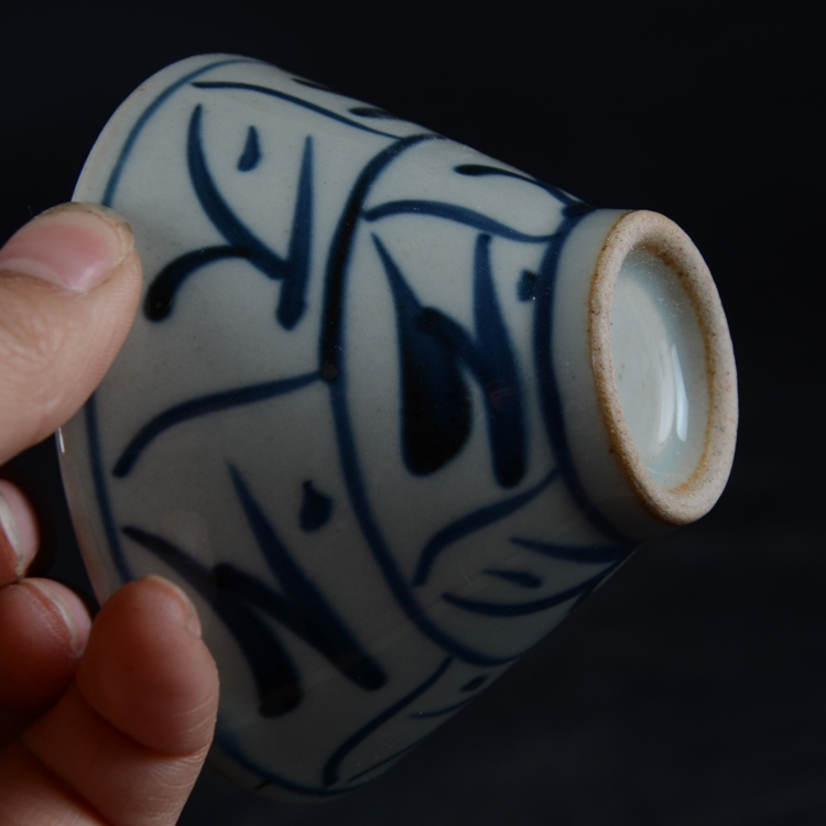 Late Qingmin kilns hand-painted green flower knife tattooing cup tea cup pu-erh tea cup ancient play antique antique old stock-Taobao