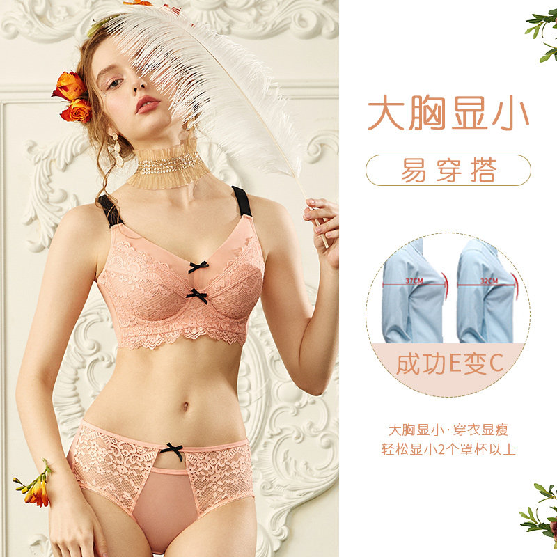 Large-yard underwear female fat mm shrinkable chest gathering with breast anti-dropping bra large bra glass