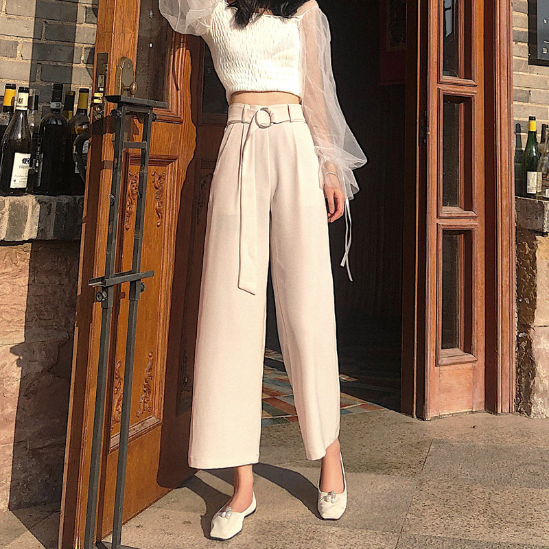 Broadlegged Pants Woman High Waist Summer New Pituality Women Casual Pants Loose Slim Ice Silk Straight Drum Suit 90% Pants