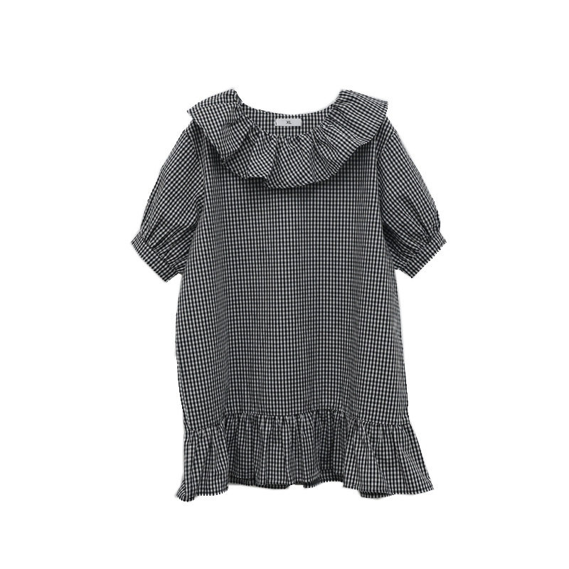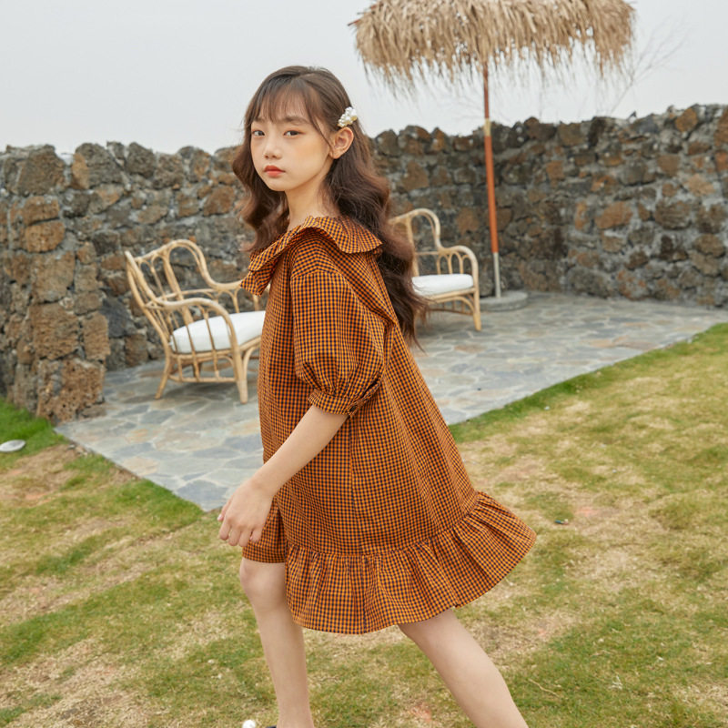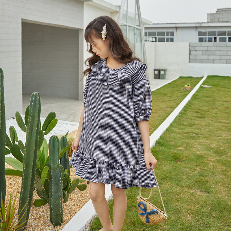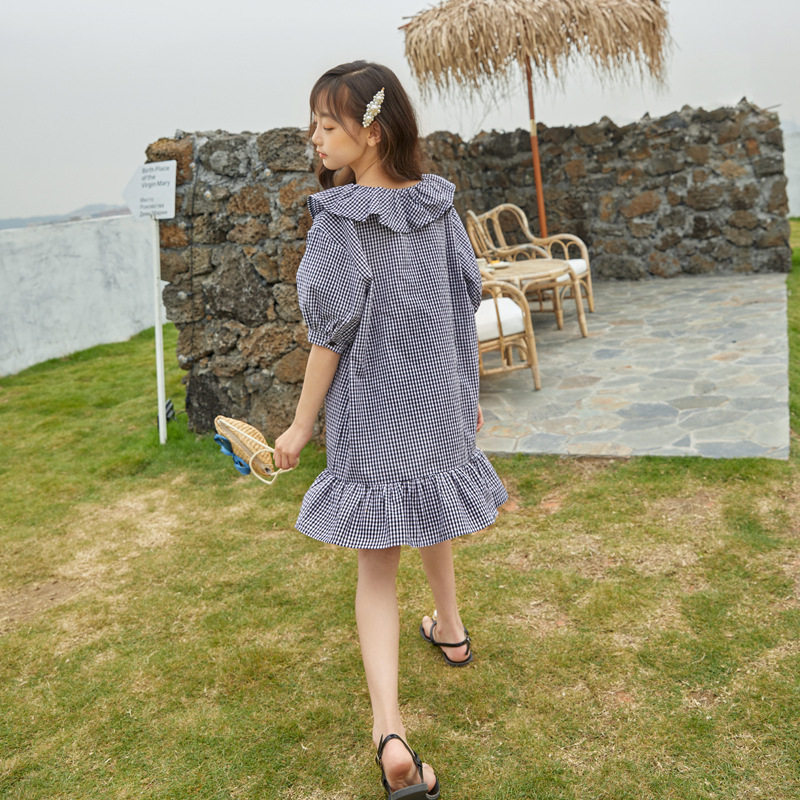 Girl Loose Lotus Leaf Side Plaid dress 2020 Summer dress new girl CUHK Scout Cotton Doll Skirt