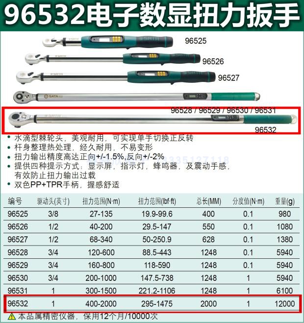 96528 Electronic torque wrench 120-600NM96529 Electronic torque wrench 160-800NM96530 Electronic torque wrench 200-1000N