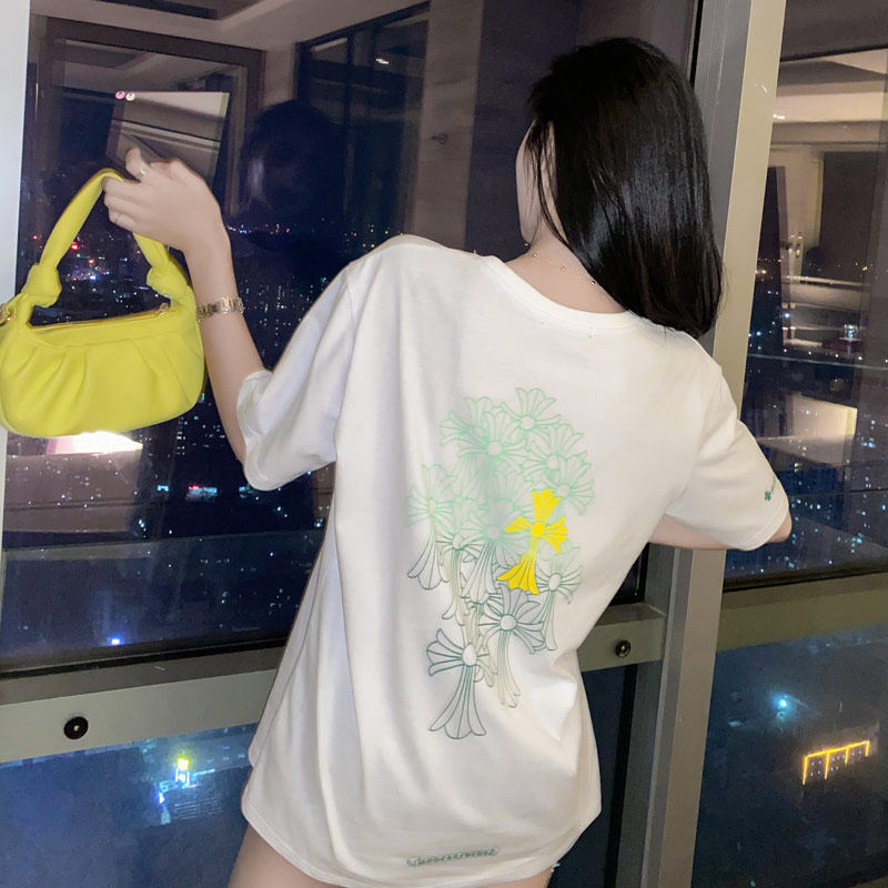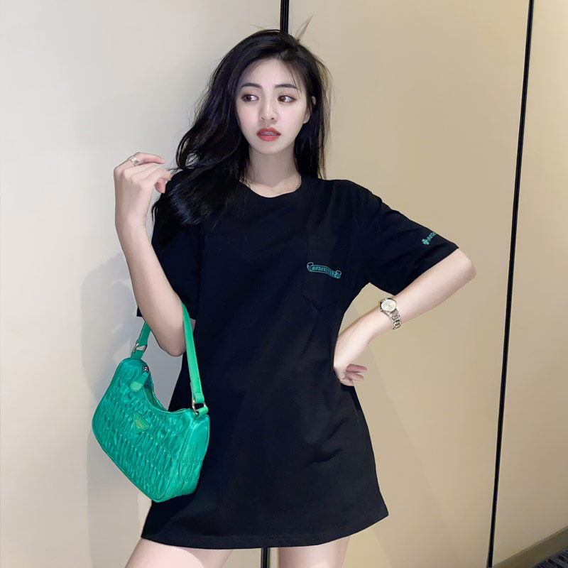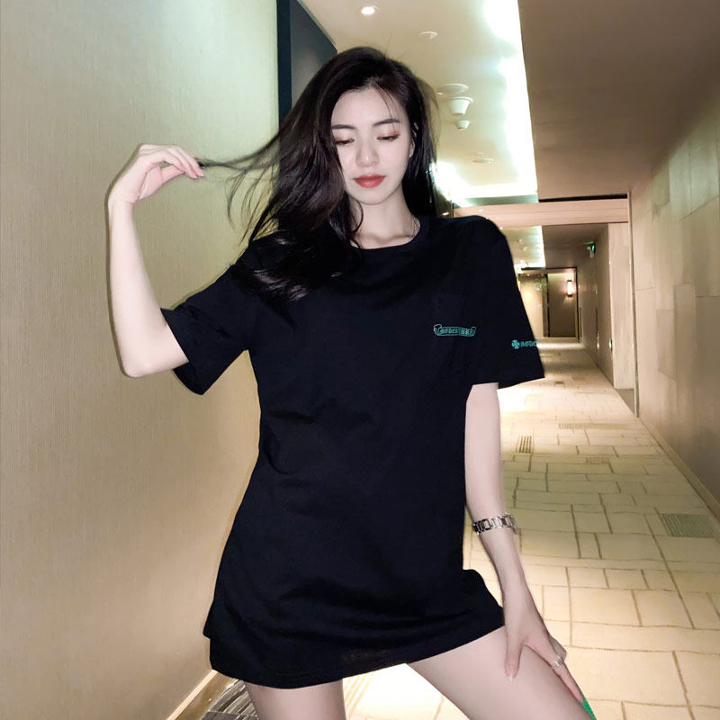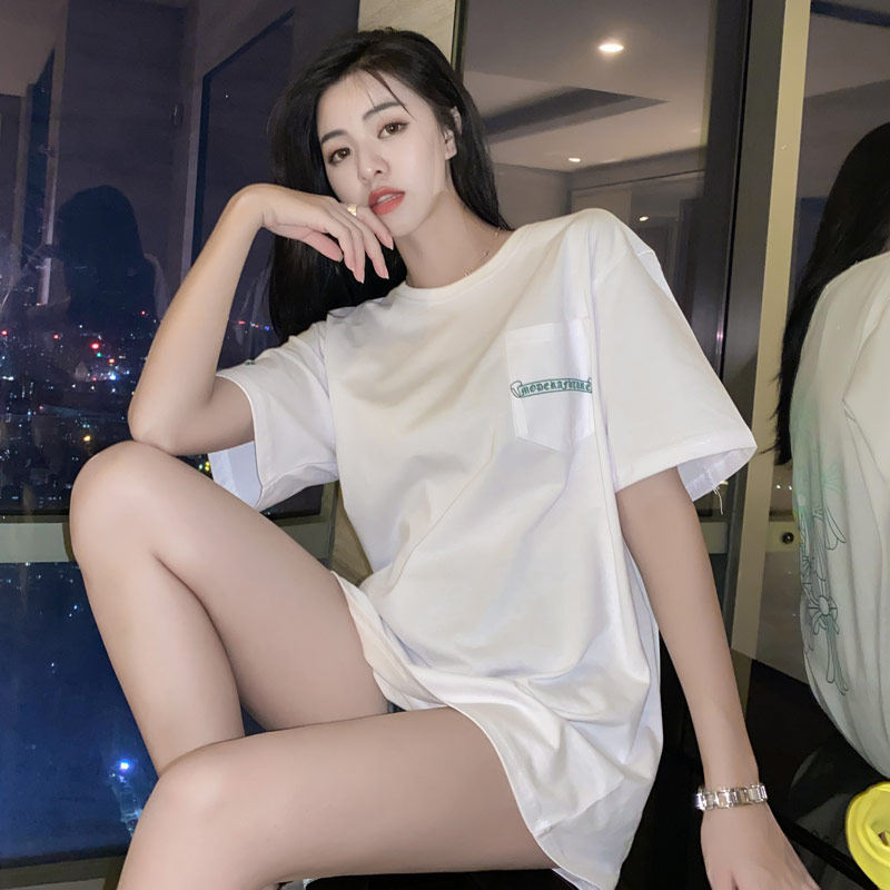 European goods white short sleeve t shirts in super-fire tide network red summer new mid-long loose large-size tops half sleeve
