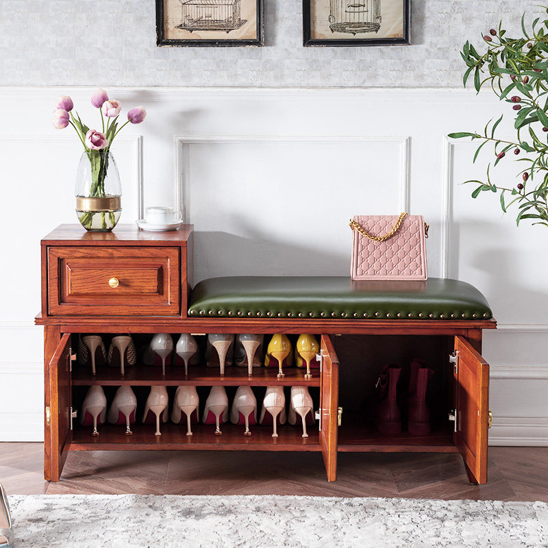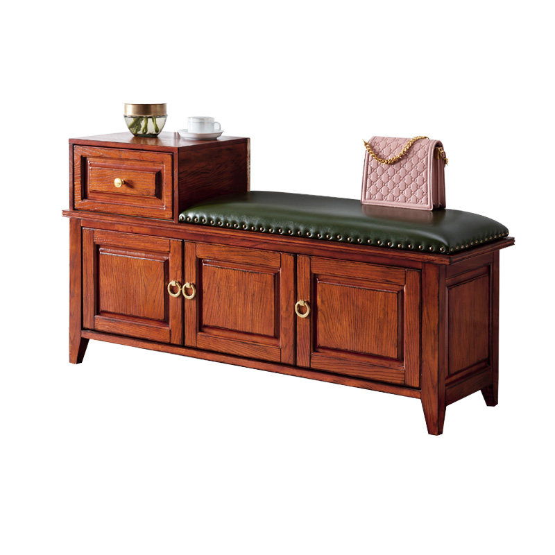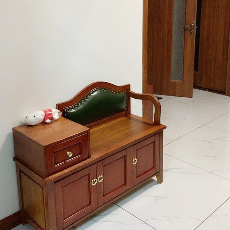 Home Change Shoes Stool Backrest Shoe Cabinet Solid Wood Genuine Leather Bed Tail Bench Light Extravagant stool New Chinese entry Shoes Stool-Taobao