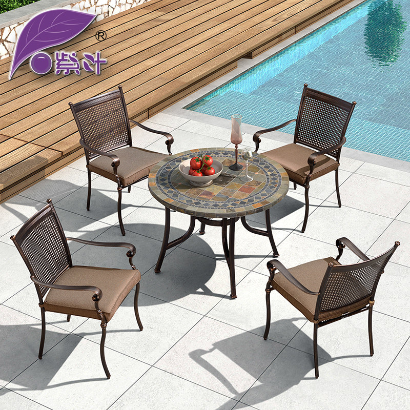 Purple leaf cast aluminum tables and chairs five pieces suite courtygarden seating outdoor furniture outdoor terrace leisure iron art dining table and chair