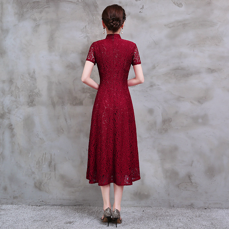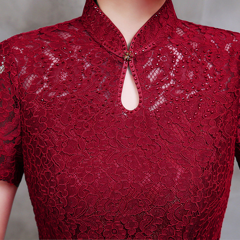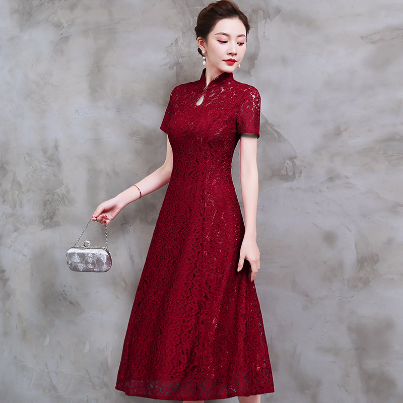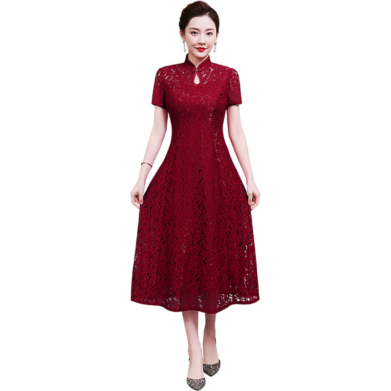 Ao Dai lace mother dress wedding banquet cheongsam retro improvement noble wedding dress happy mother-in-law cheongsam dress long summer