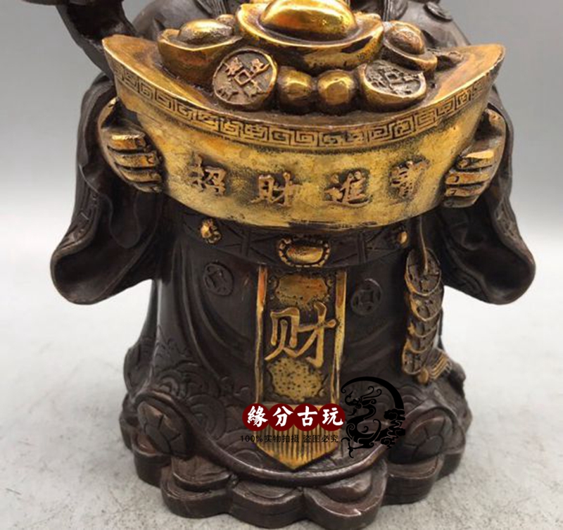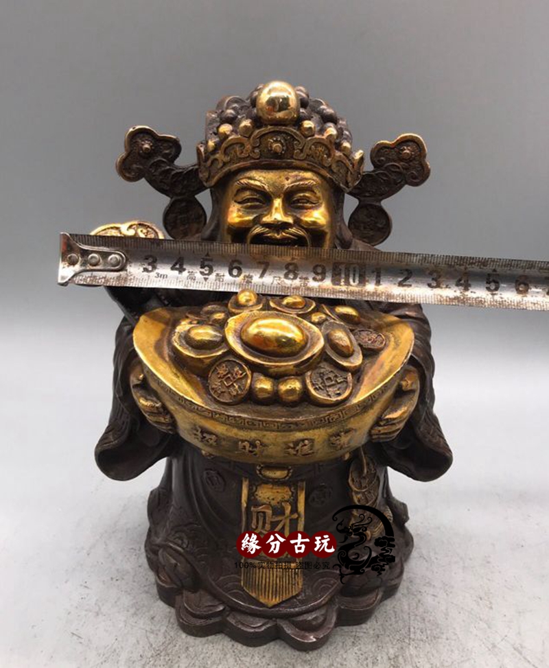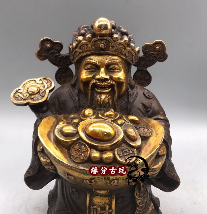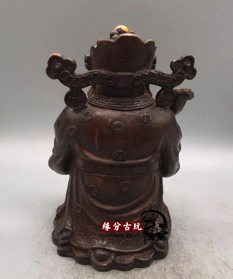 Antique lucky pure copper God of wealth ornaments Large Feng shui copper God of wealth Buddha statue Wen God of wealth Bronze statue Living room worship