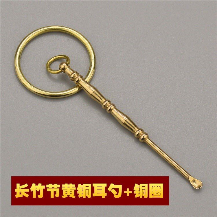 Threaded brass ear spoon long bamboo joint brass ear spoon bamboo brass ear spoon copper ring threaded brass ear spoon copper ring threaded brass ear spoon copper ring copper ring One bamboo brass ear spoon copper ring