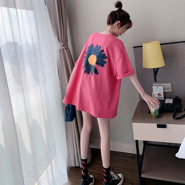 Pregnant women's coat summer loose fashion base shirt large size summer dress short sleeve T-shirt medium and long version Net Red