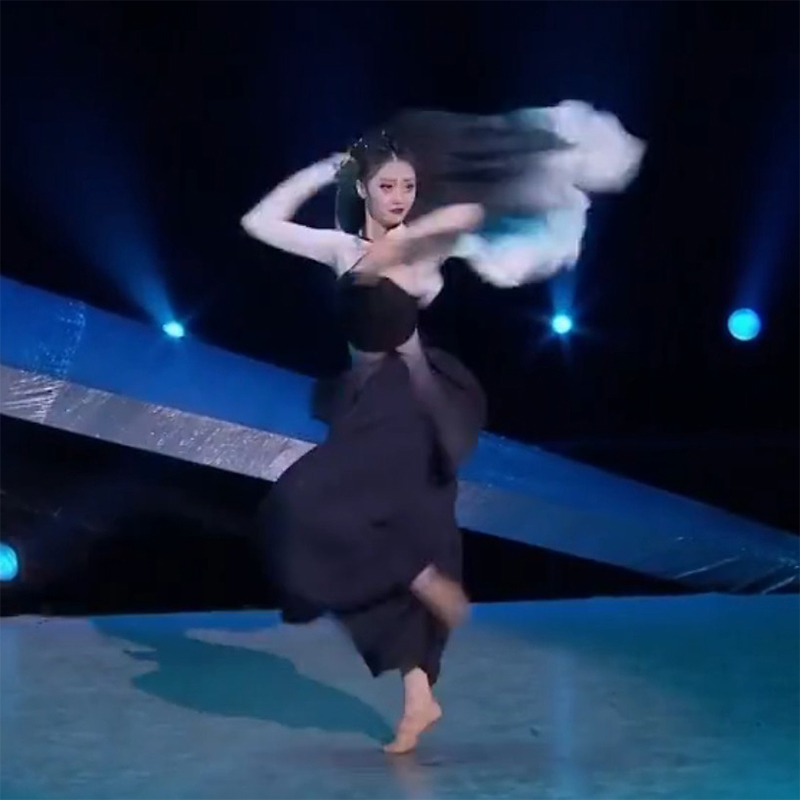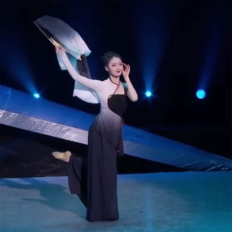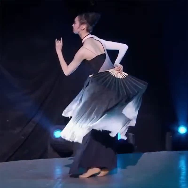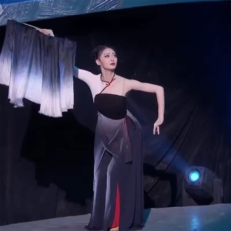 Wang Rouxue Guyue Yaoran National Folk Dance Performance Costume Elegant Solo Dance Fan Dance River of Life Customization