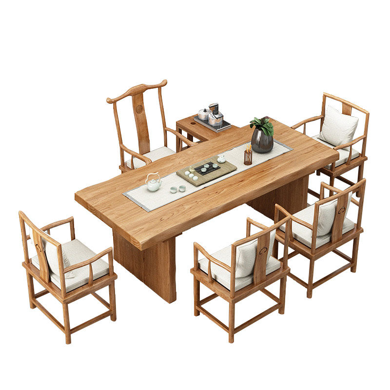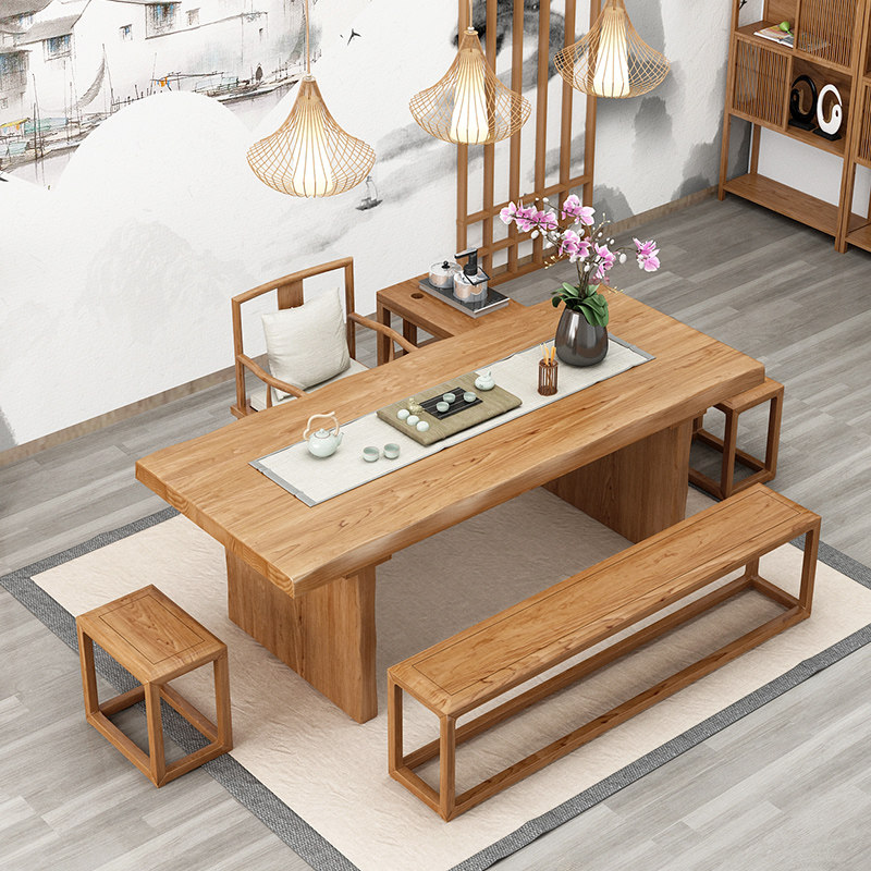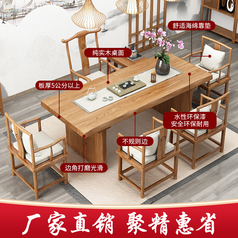 Tea table Solid wood tea table Zen modern simple new Chinese Kung fu big board Household one-piece tea table Tea table and chair combination