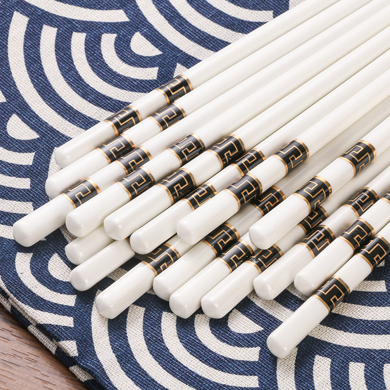 Ceramic household non-slip mildew-proof high temperature resistant spoon chopsticks Environmental protection bone China chopsticks family set 10 pairs of antibacterial porcelain chopsticks