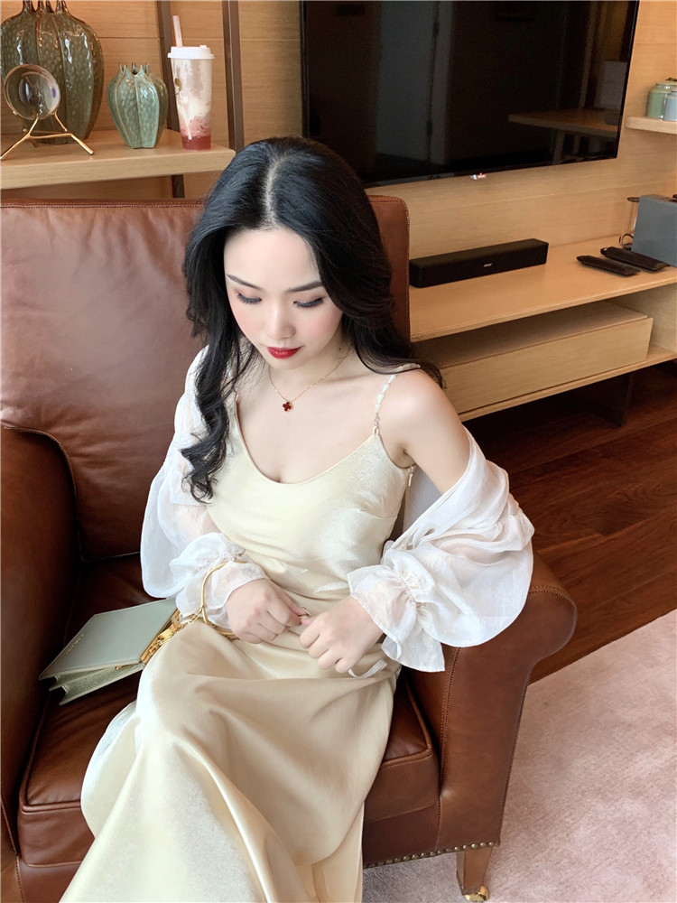 Free small sexy suspender skirt women's summer new V-neck retro satin surface thin temperament wear a dress