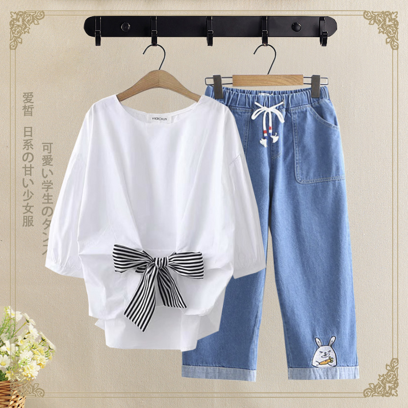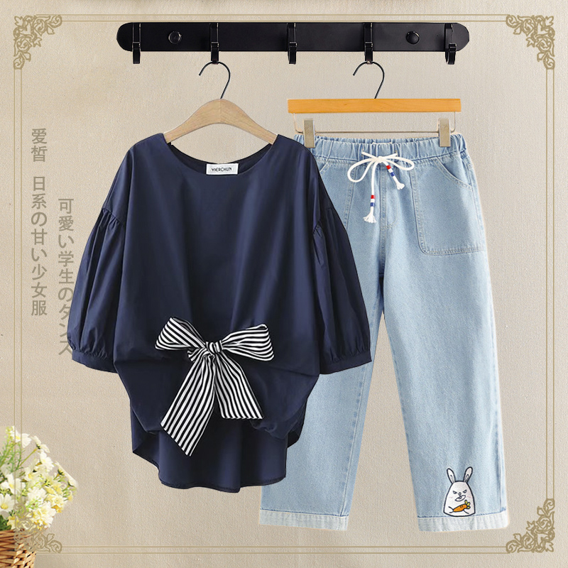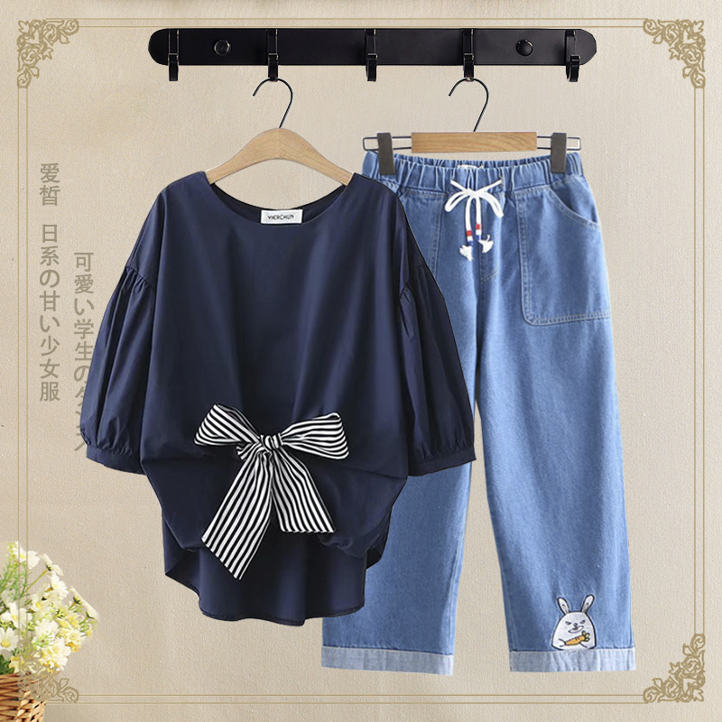 College style junior high school student girl suit 2021 summer new Japanese sweet Korean version half-sleeve two-piece set female 17