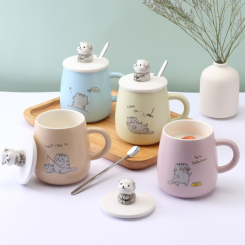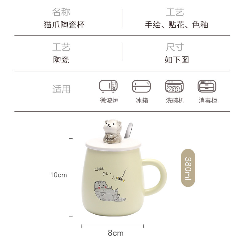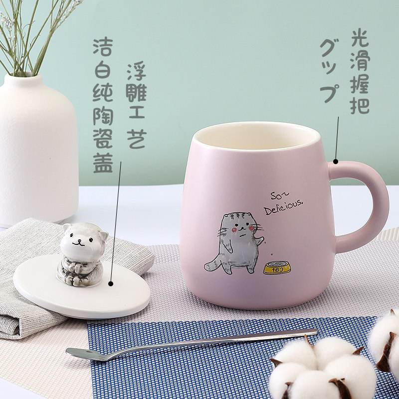 Cute ceramic water cup with lid spoon coffee Mark Oats Breakfast girl Net Red office high value home