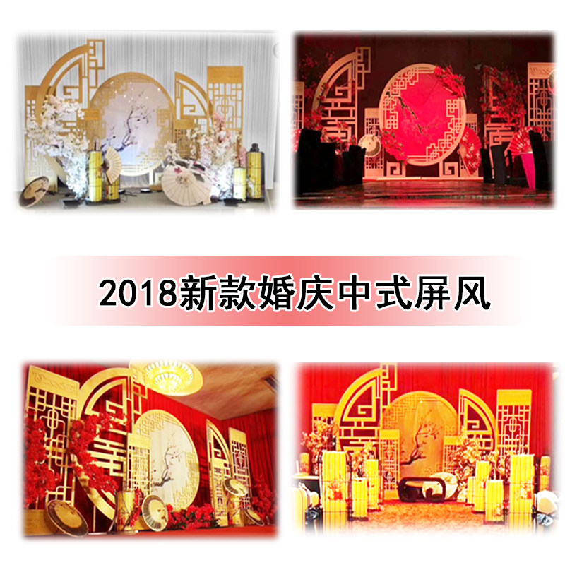 Large screen cover small screen cover high and low round screen cover round background cover Mass background seven pieces of Chinese style Screen Three sets