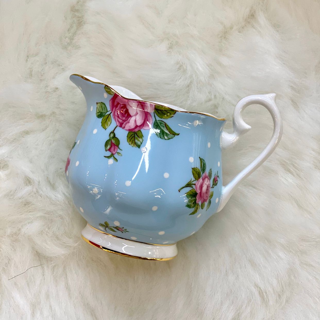 Blue polka dot teapot sugar milk three-piece set